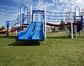 The results of the synthetic turf area far surpassed the mulched areas and resulted in 20% fewer injuries and as a side benefit, 15% more overall play time due to the grass not retaining water from rain and snow. So overwhelming was the evidence, instead of waiting two years as planned, the Missouri school district moved quickly to replace more than 33 playgrounds within the 12 schools in the district with a safer playground turf.