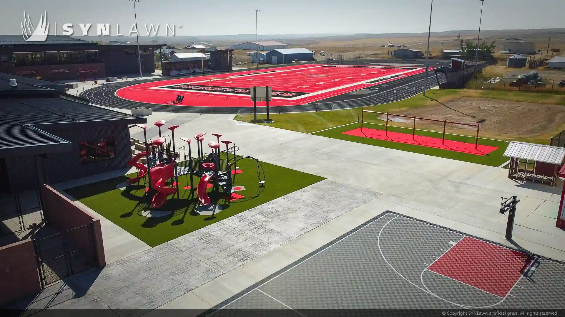 SYNLawn Mountain West Montana worked closely with the school district to create a safer play environment for students by replacing the wood chips with premium surfacing products, including: