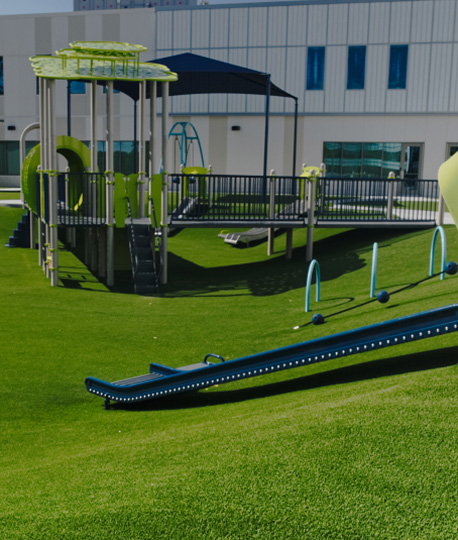 La seguridad es nuestra principal preocupación y no escatimamos esfuerzos, yendo más allá para garantizarla en todos los aspectos, desde la prevención de incendios hasta la protección contra caídas. Más de 320 pruebas asociadas con nuestras líneas de productos Las pruebas incluyen: lixiviación, toxicidad, altura de caída y pruebas integrales de incendio (por nombrar algunas) 11 productos certificados por IPEMA (Asociación Internacional de Fabricantes de Equipos de Juego) La tecnología antimicrobiana Sanitized® de Super Yarn previene la acumulación de microbios hasta en un 99 % Esta tecnología elimina los olores bacterianos Los sistemas de relleno de alto rendimiento de SYNLawn ofrecen los entornos más limpios y seguros para familias y mascotas Salud y seguridad inigualables para hospitales y todas las demás aplicaciones comerciales