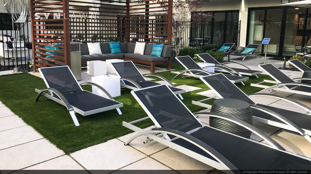 While the lasting benefits of using SYNLawn artificial grass may not be immediately evident to tenants of the SLX Luxury Apartment Complex, the elevated beauty and realism of the turf surely will be. After all, who wouldn’t prefer the feeling of soft grass blades between one’s toes versus the harshness of a traditional concrete surface?